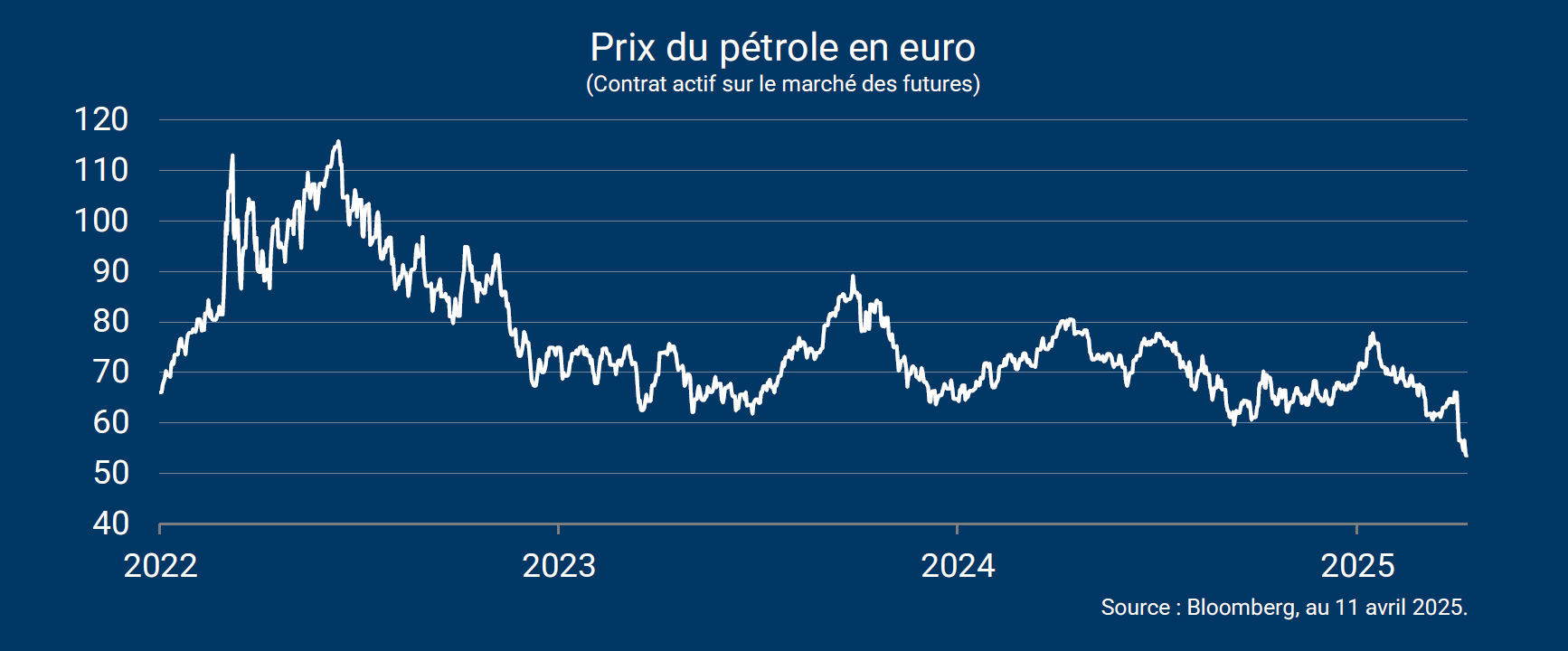 Pour l'Europe, le repli du pétrole est une bonne nouvelle. Il pourrait faciliter la baisse de l'inflation en zone euro entre le troisième et le quatrième trimestre 2025 et améliorer la marge de manœuvre de la BCE. Contribuant à l'amélioration du pouvoir d'achat, il pourrait constituer un soutien non négligeable à la croissance au moment où la visibilité se réduit en raison des frictions commerciales.