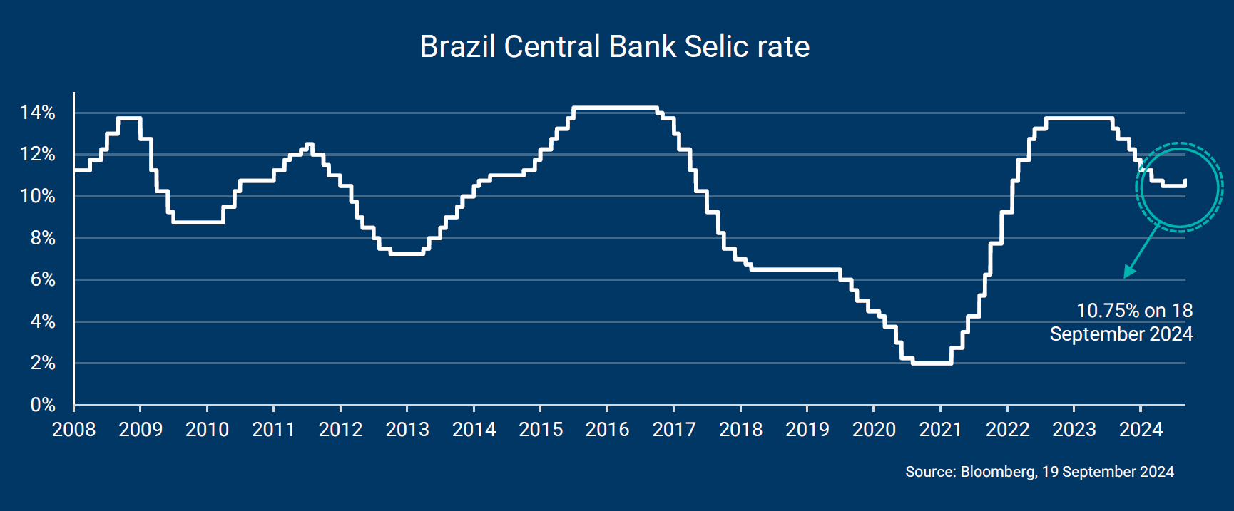 Op woensdag 18 september verhoogde de Braziliaanse centrale bank haar belangrijkste rentetarief met 25 basispunten naar 10,75%. Dit tarief, bekend als de Selic, werd tijdens de vergaderingen in juni en juli gehandhaafd op 10,5%, nadat het sinds augustus 2023 zeven keer op rij was verlaagd.