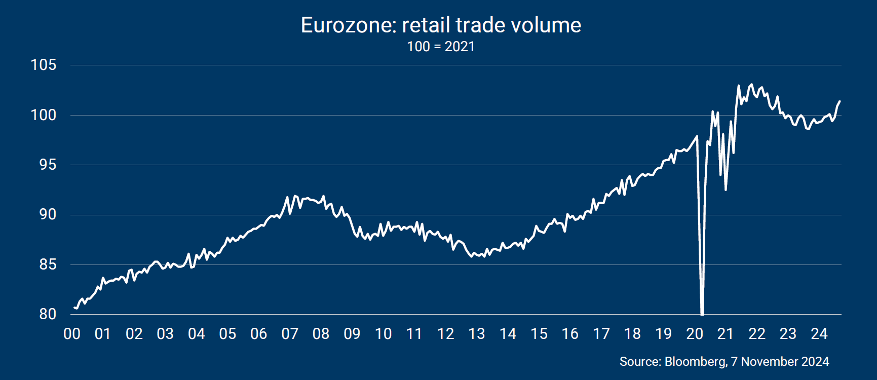 Er zijn nog andere redenen voor voorzichtigheid. Sommige landen, zoals Duitsland, beginnen banen te verliezen. Hoewel de PMI voor de dienstensector in september licht opveerde, is de neerwaartse trend nog niet omgebogen. Ook het aantal inschrijvingen van auto's is relatief laag. Toch is deze opleving van de detailhandelsverkopen, indien deze doorzet, goed nieuws voor de Europese economie.