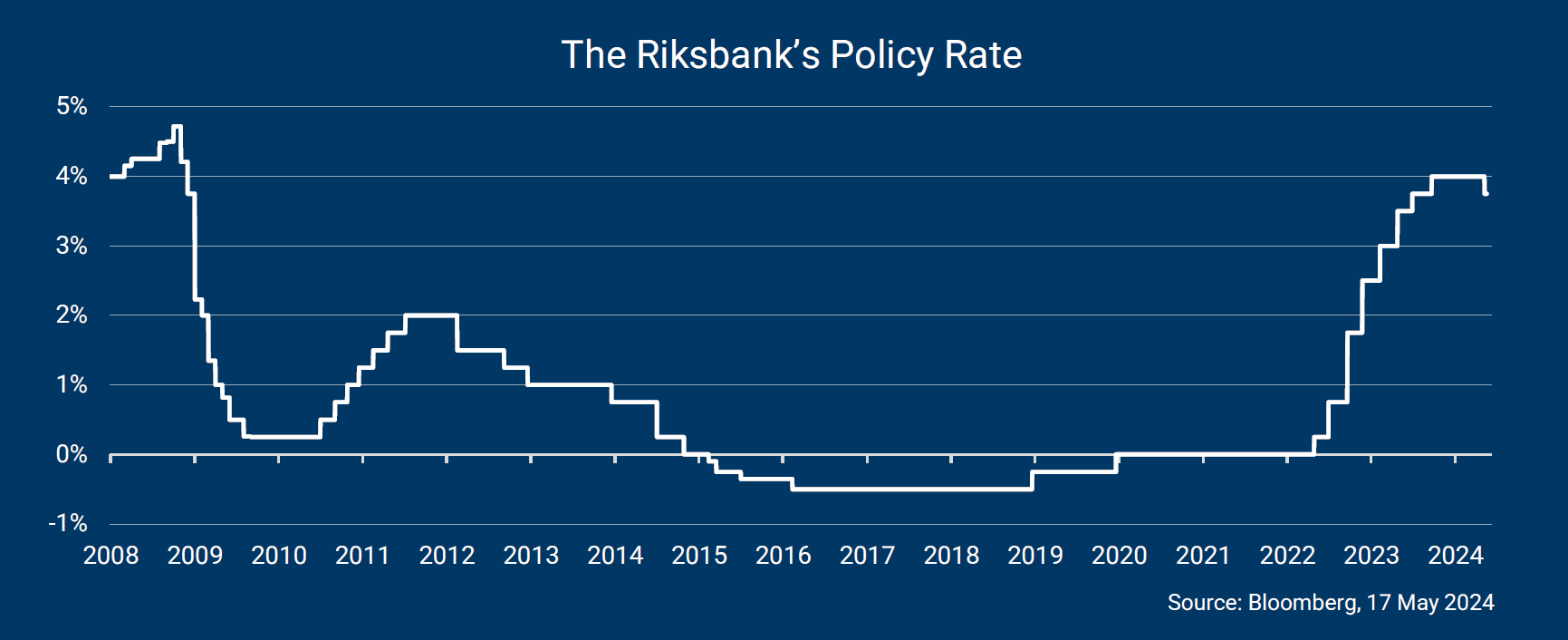 Op 8 mei verlaagde de Zweedse centrale bank haar beleidsrente met 25 basispunten van 4,00% naar 3,75%. Hiermee liep de Sveriges Riksbank vooruit op de ECB, die de rente naar verwachting met 25 basispunten zal verlagen tijdens de vergadering op 6 juni.